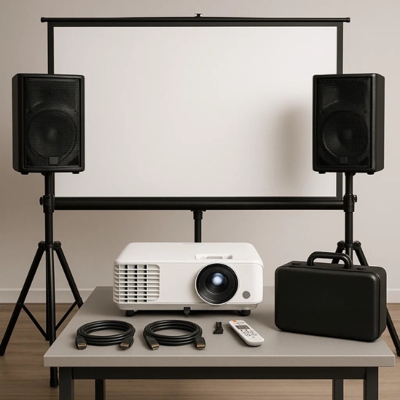 Image Suggestion: Projector set up at an event or in a conference room, ready for use.